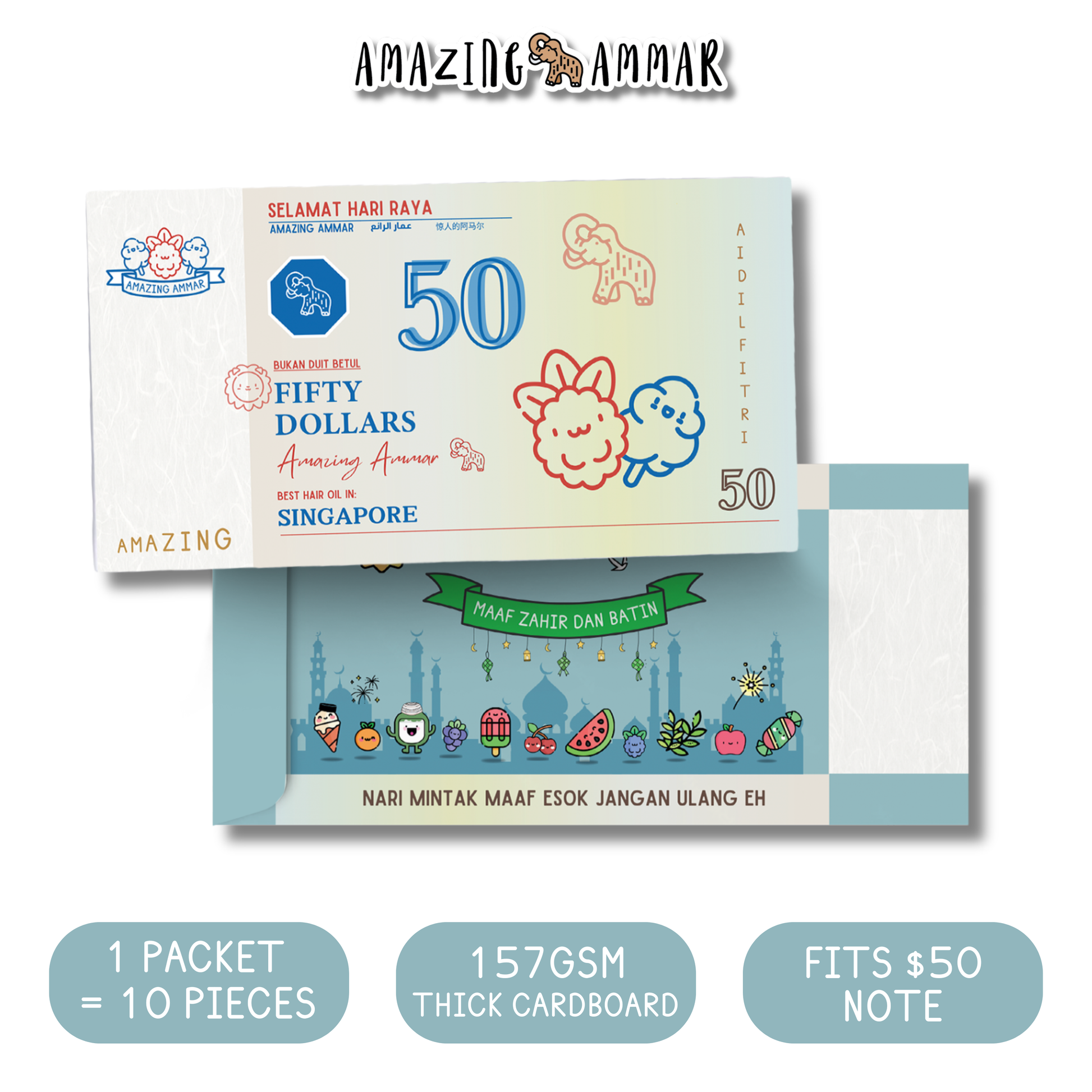 The Amazing Ammar sampul raya is made of 157gsm art paper, which is a thicker and more durable paper, making it suitable for long-term use. The paper is also of a higher quality, ensuring that the sampul raya will last for a long time.